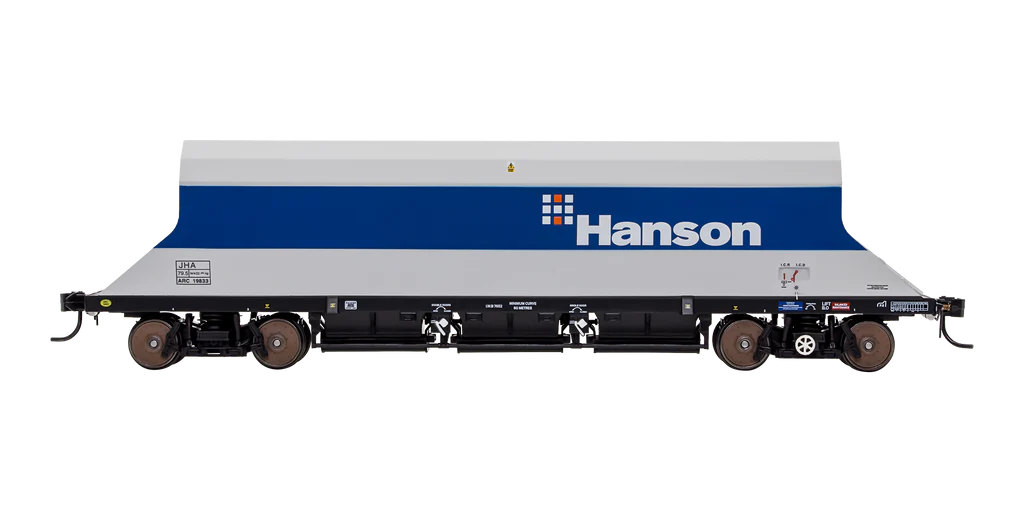 The fleet is noticeable for its use of distinctive inside bearing TF1 low track force bogies. There are a few variants of the hopper. The outer hoppers are numbered 17xxx and the inner hoppers are numbered 19xxx. Only the most distal end of the outer hoppers are fitted with buffers, all wagons are fitted with buckeye couplings.
