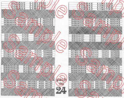 Coach boards are a must for any chartered railway service. These signs have a self adhesive backing so all you need to do is cut out the sign and stick it to a section of plastic either on the coach or separate.