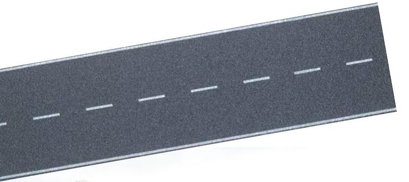 This flexible polymer can also be shaped into gentle curves and laid over minor changes in level making it great as a realistic road for your diorama. You can also trim the edges to make it narrower or remove the outside white lines if required.
