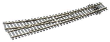 Curved Double Radius Turnout. R/H Electrofrog.Nominal radii: Outside 1524 mm, Inside 762 mm. Length:256 mm.