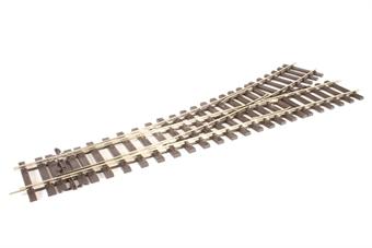 Unifrog: For the first time in 0 gauge, the turnouts are wired in the new Unifrog configuration. Both routes through the turnout are live at all times, which is ideal for DCC use, and there is no need for any additional wiring or fitting insulating rail joiners. The frog tip is normally ‘dead’, which poses no problem for all but the smallest locos, but it is conductive and has a trailing wire attached, allowing it to be energised using a PL-13 or PL-15 accessory switch attached to a PL-10 point motor, or a PL-33 micro-switch in a PL-19 housing (which clips directly to the turnout) activated directly by the movement of the tiebar. Matching the geometry of the existing Setrack straight and curve: 22.5° exit angle, 15.5” (393.7mm) length, 40.5” (1028.7mm) radius, Bullhead rail.