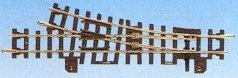 Turnout, right hand, with metal turnout frog. Without turnout mechanism.Length of the straight track 134.4 mm (standard length), branch angle 15°. Gauge: 9 mm.